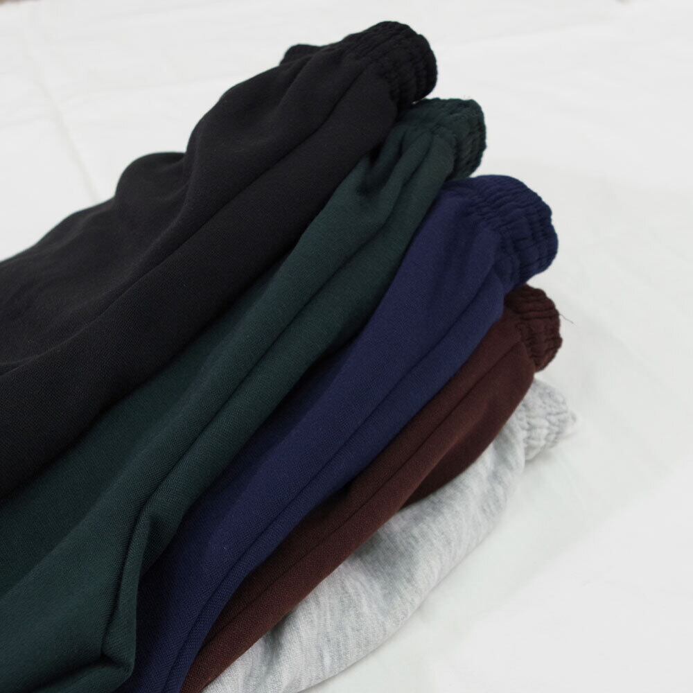 こちらは裏起毛を施したコットン15%、ポリステル85%のスウェットパンツです。速乾性に優れ、内側はフリース状に起毛されているので保温性も高く、ケアも容易な点が魅力です。