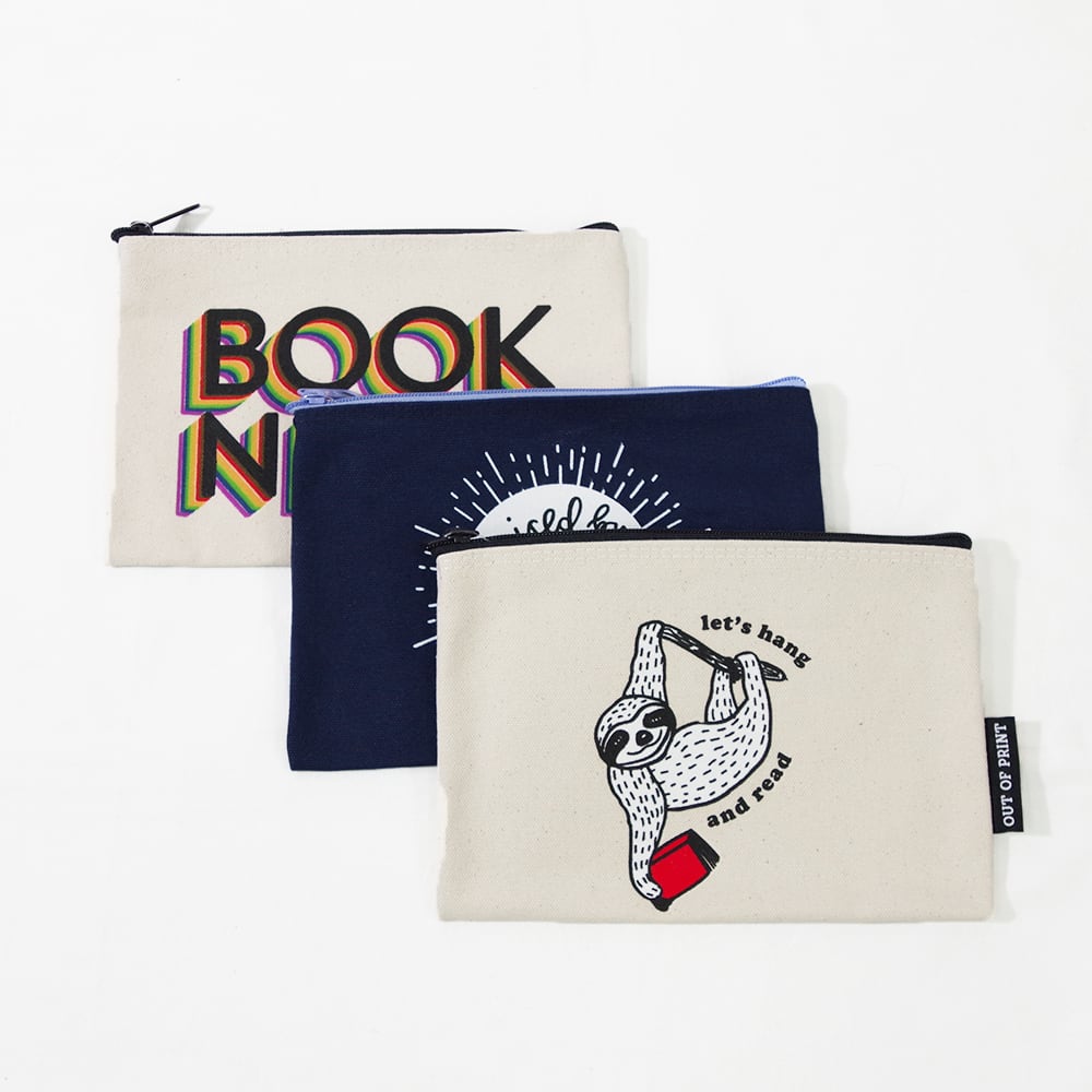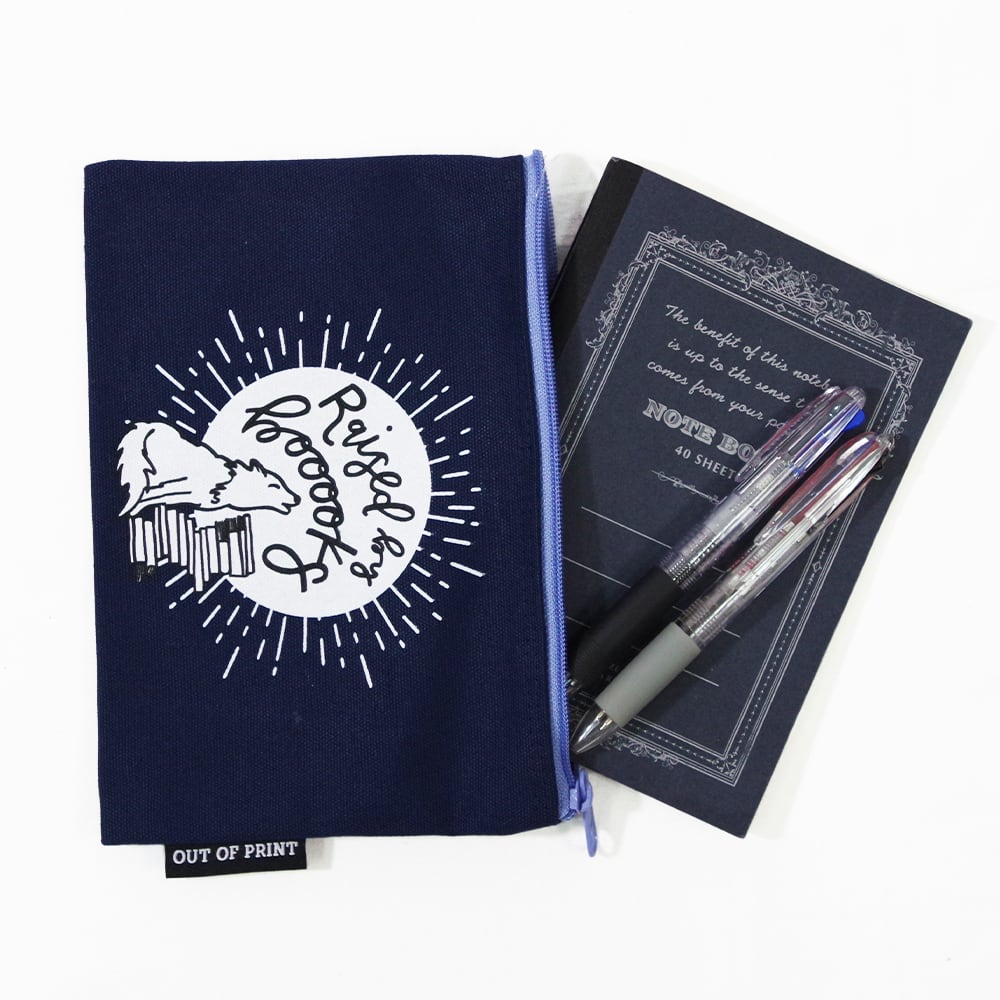 こちらは読書にまつわるアートワークをプリントした小物を入れて持ち歩きやすいサイズのキャンバスポーチです。読書をすることの楽しさを感じていただけるデザインとなっています。