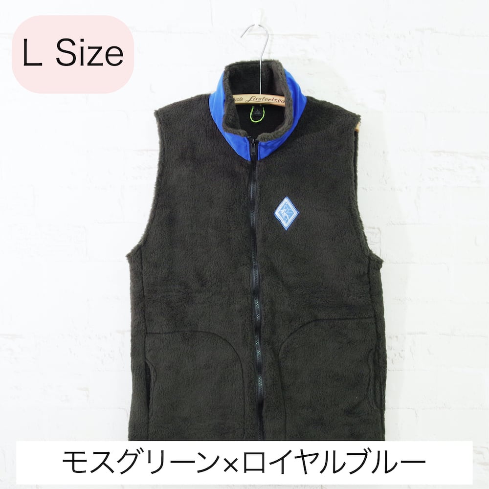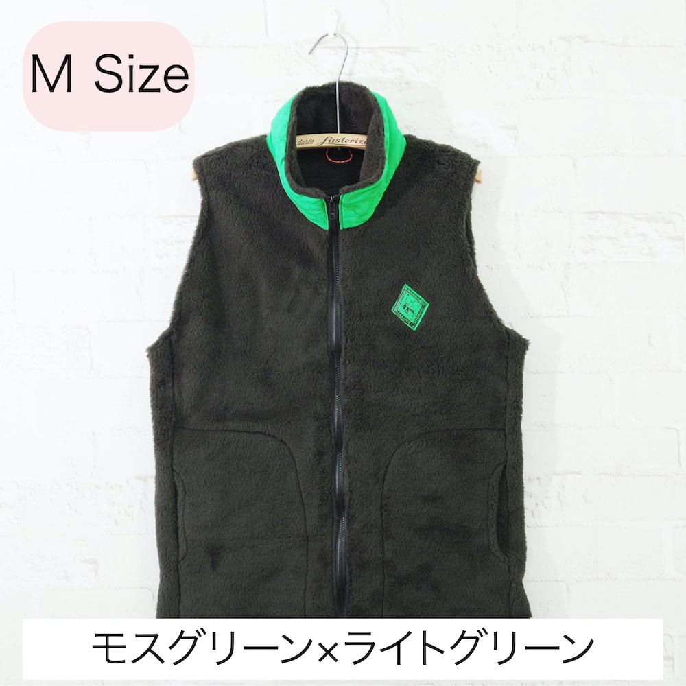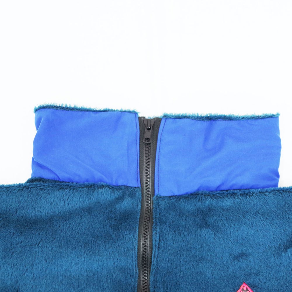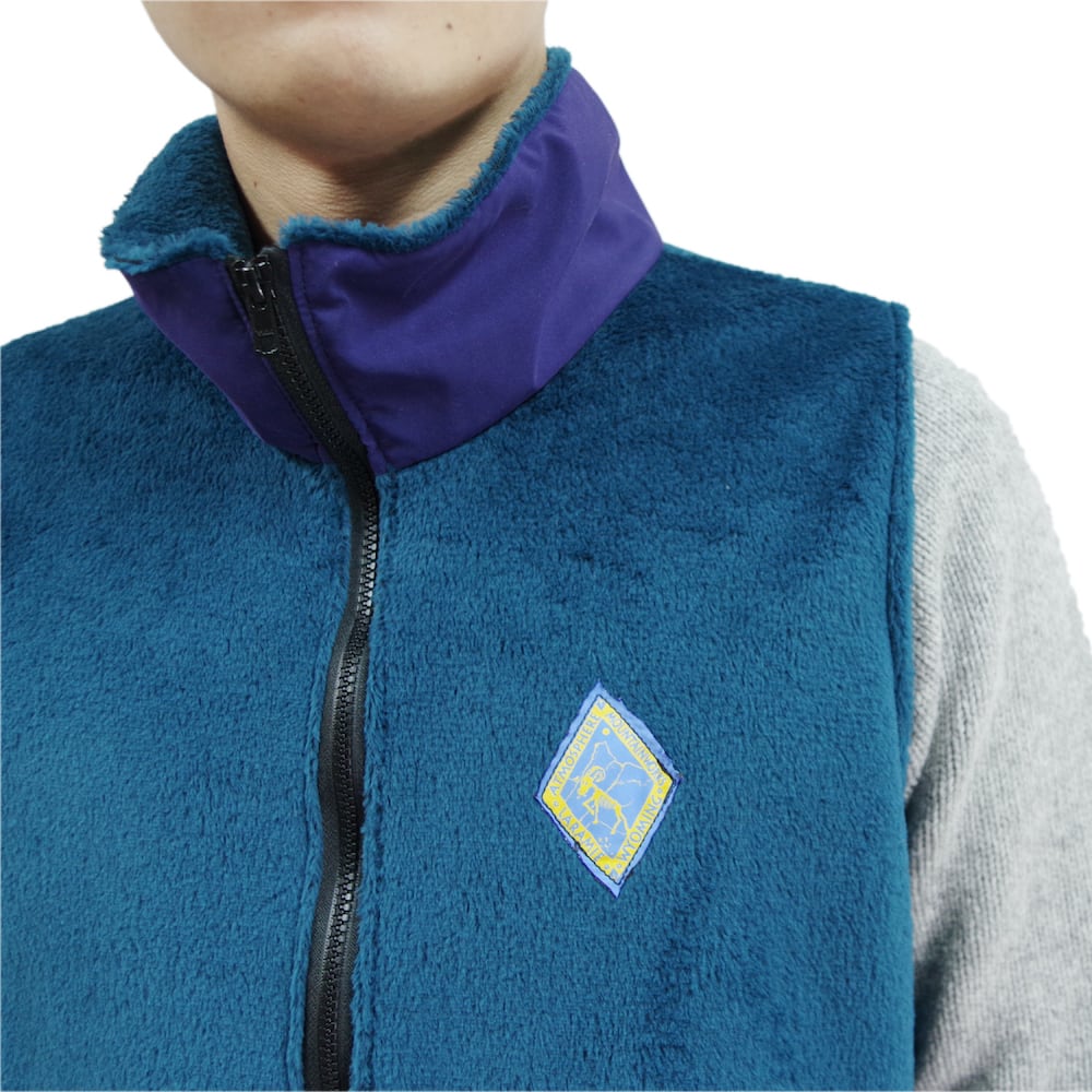 コチラのフリースベストも身生地のフリースとネック部分のナイロン地、胸元のロゴパッチのカラーがすべて異なる配色となっております。