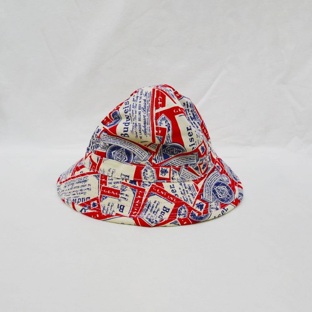 こちらは日本でも有名なビールの銘柄バドワイザーのロゴを全面にプリントした生地で製作したモデルです。クラシックなロゴデザインがヴィンテージなデザインとなっています。
