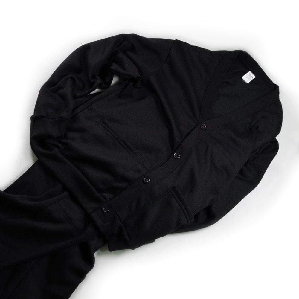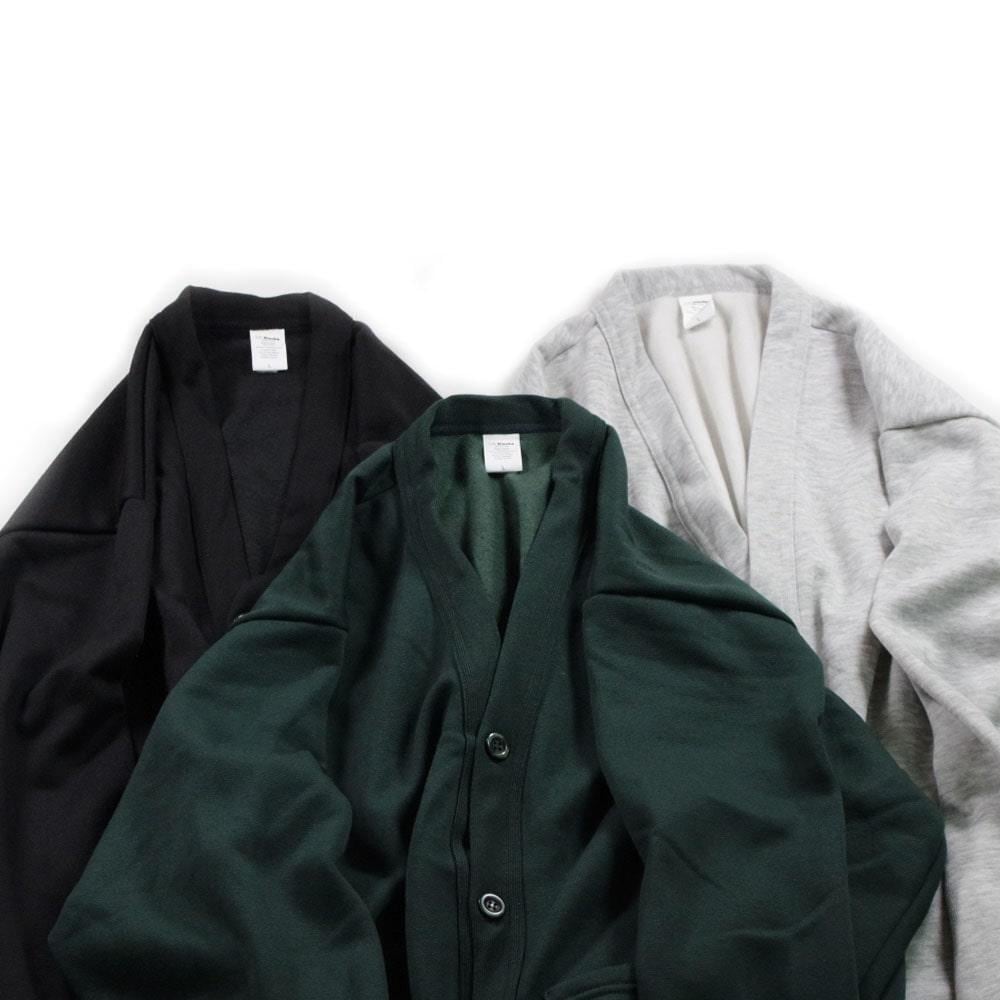 こちらは裏起毛を施したコットン15%、ポリステル85%のスウェットカーディガンです。速乾性に優れ、内側はフリース状に起毛されているので保温性も高く、ケアも容易な点が魅力です。