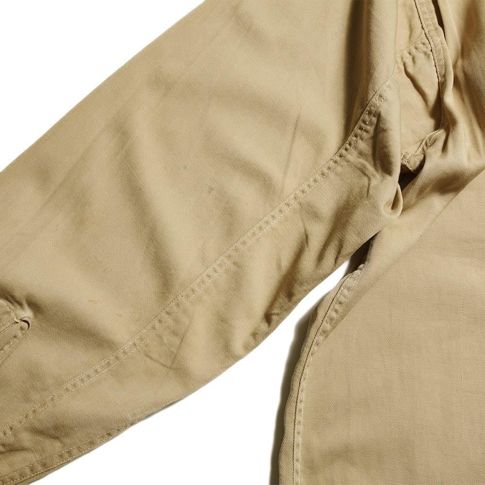 タフなチノクロス地を使用しており擦れや破れなどのダメージはありません。全体的に染みや汚れはありますが、ヴィンテージのワークウェアとして加工ではないリアルな風合いとなっています。