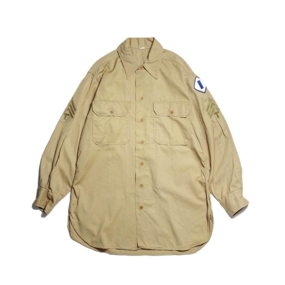【before half century Vintages(ビフォーハーフセンチュリーヴィンテージ)】40's VINTAGE MILITARY WORK SHIRTS 40年代ヴィンテージミリタリーワークシャツ ガスフラップ マチ付き