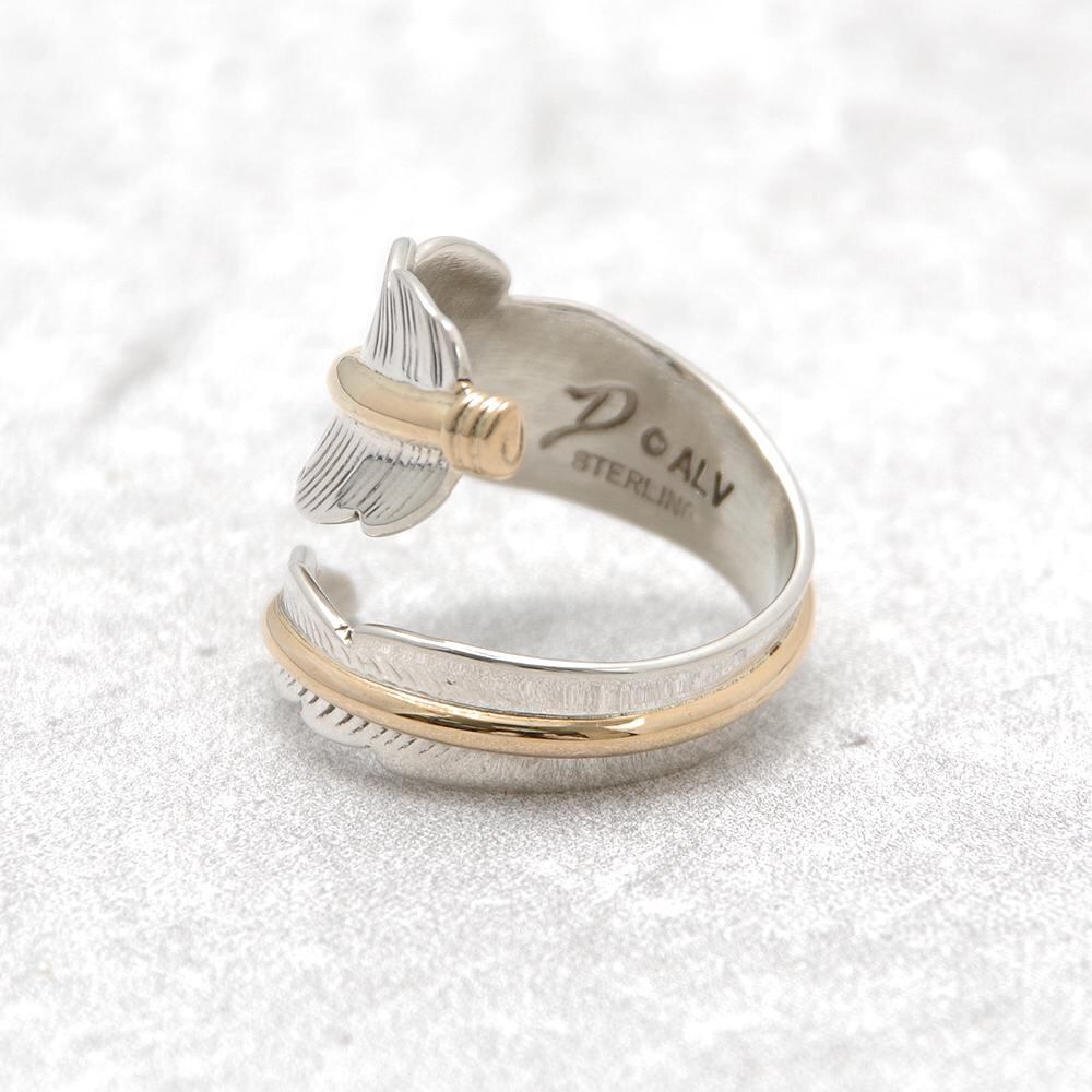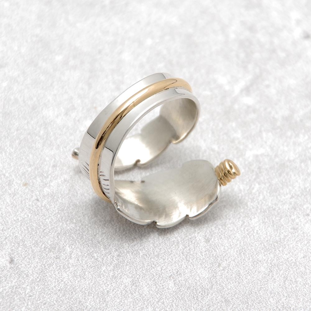 こちらのフェザーリングは芯の部分に14金をあしらっており、女性アーティストならではの繊細な彫金も特徴です。